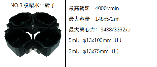 3 | 脱帽水平转子 | 4000rpm | 148x5/2ml | 3438/3362xg |