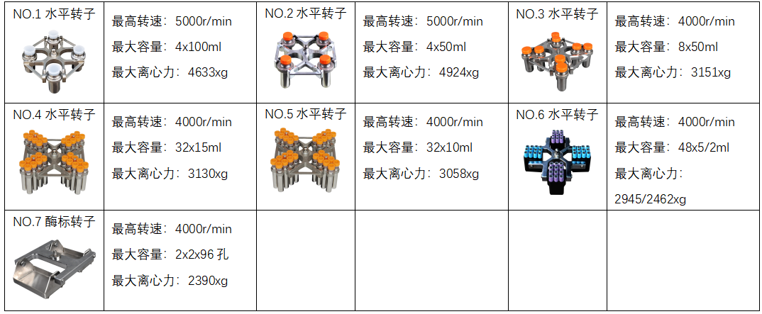 5 | 水平转子 | 4000rpm | 32x10ml | 3058×g |