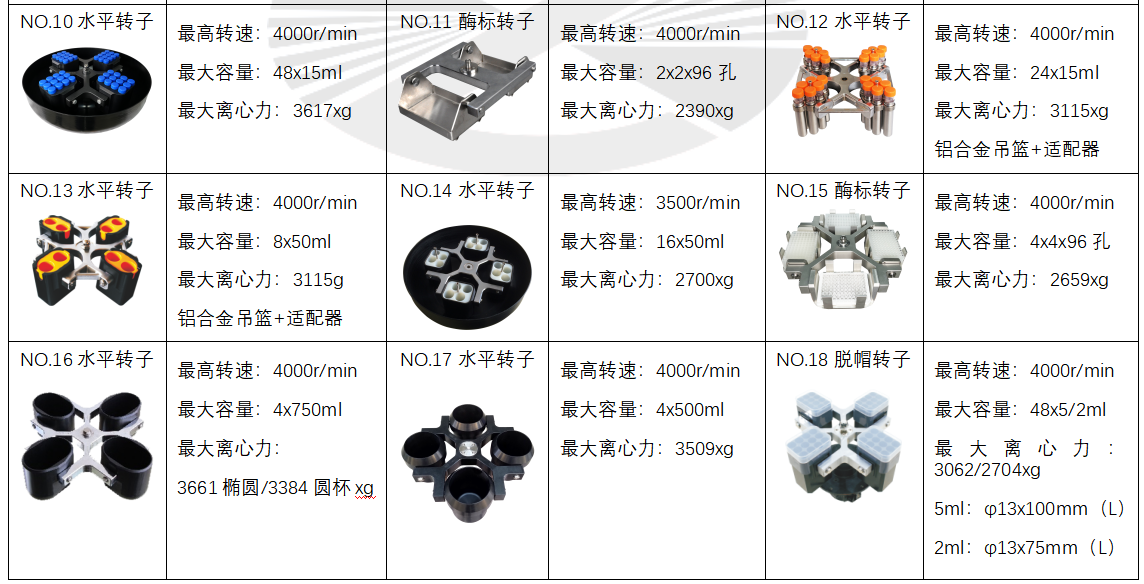 13 | 水平转子 | 4000rpm | 8x50ml | 3115xg |