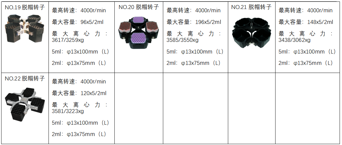 u 22种规格转子可选,亦可进行转子定制,并可根据试验要求设计各种适配器,满足不同用户的不同实验需求