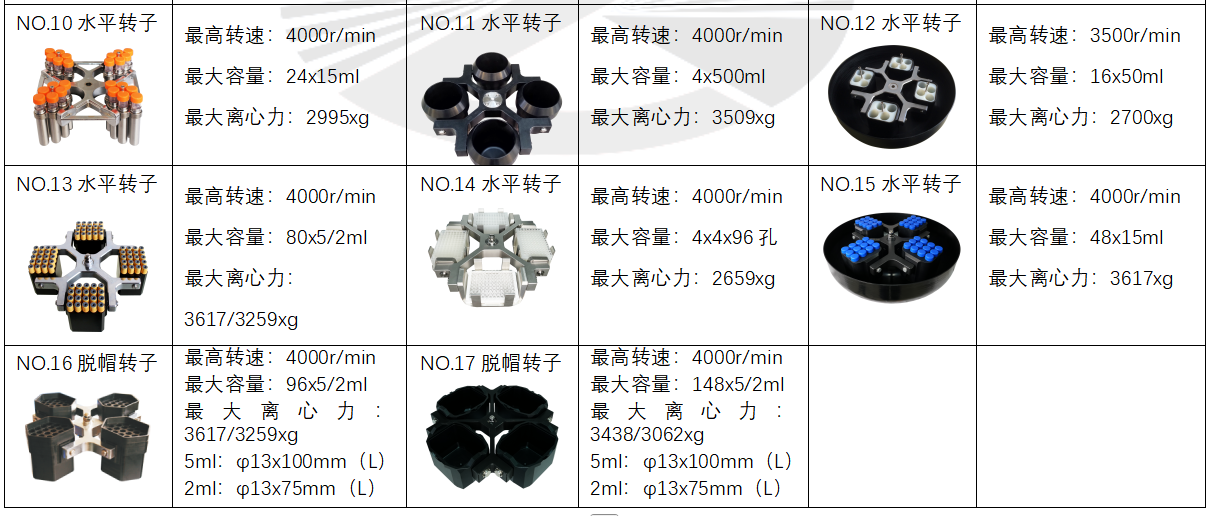 17 | 脱帽水平转子 | 4000rpm | 148x5/2ml | 3438/3062xg |