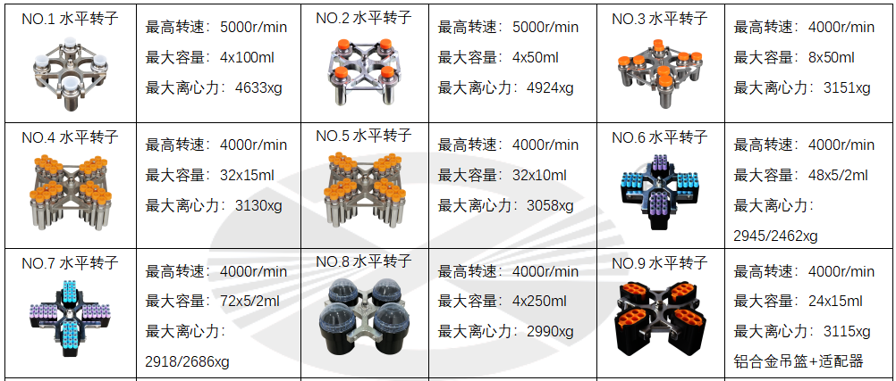 10 | 水平转子 | 4000rpm | 8x50ml | 3115×g |
